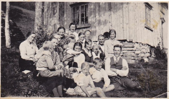 Besøk hos Jens og Laura Pedersen. Andre personer på bildet som ikke er blitt